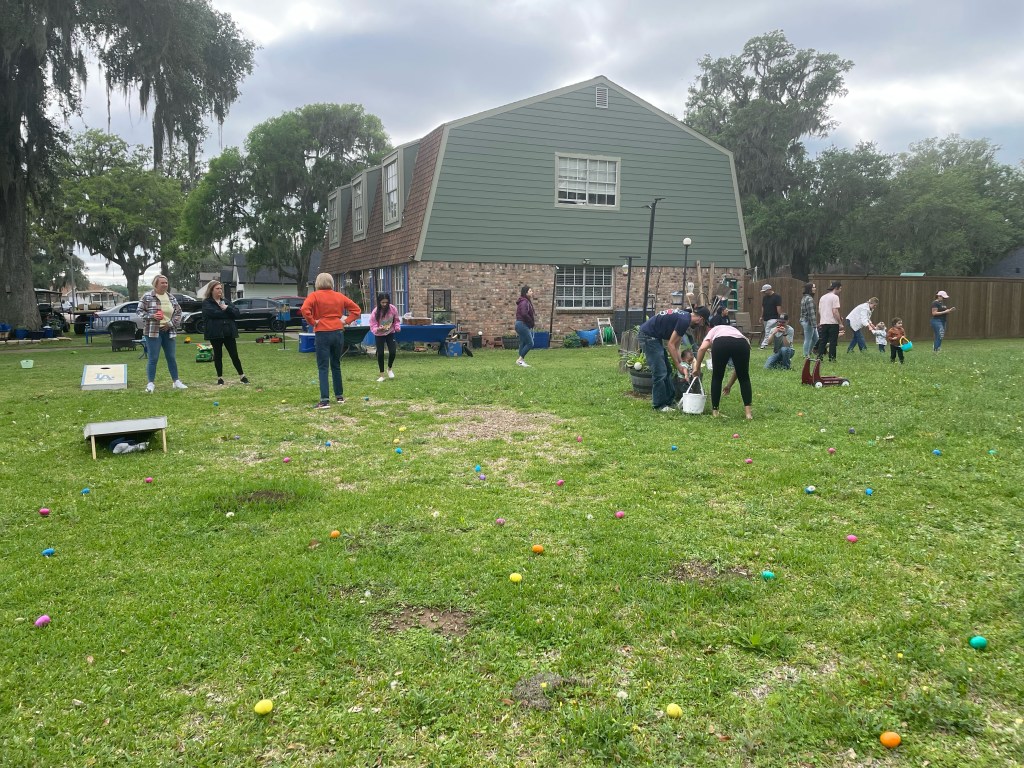 I don’t think that I wrapped my head around how much work it would take when we first started planning this egg hunt. And then we go on and decide to take on some yards to get more donations as an “Egg your Yard” fundraiser the night before Easter. It was fun but it was a lot ! Lol