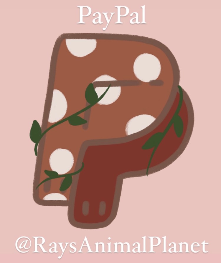 PayPal : @RaysAnimalPlanet or our email is raysanimalplanet@gmail.com